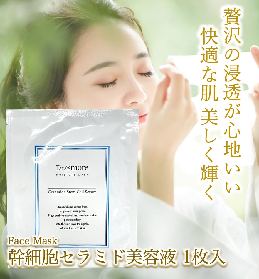 贅沢セラミドと高濃度幹細胞場培養液を高級シートマスクに浸透させた、高保湿型、お肌の若返りのためのフェイスマスクです。