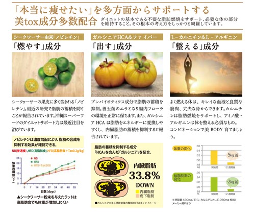 さらに、日常的にお客様に飲んでいただくことで体重減少を早く実感でき、手放せないサプリメントとなることでしょう。