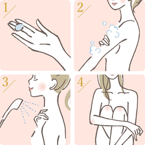 その後、濡らしたボディスポンジなどで優しく体を洗うと泡が立ちます。