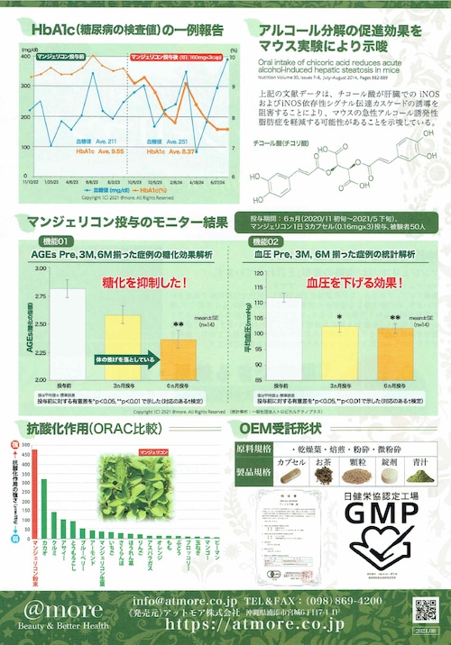翌朝のむくみも軽減され、お酒が怖くなくなります。なぜなら、マンジェリコンが肝臓で作用しアルコールの分解を促進するからです。文献でも発表され、沖縄でJAS有機栽培された、オーガニックの体に優しい素材を使用しています。