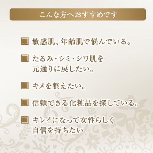 洗顔後、5〜10プッシュをフェイスとデコルテラインにスプレーし、肌なじみを良くします。
