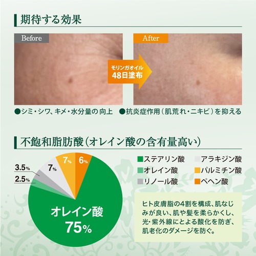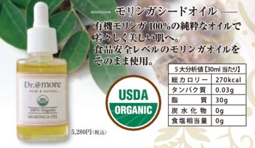 弊社は通常、化粧品処方をしたものを商品化するのですが、このオーガニックモリンガは、このままお使いいただいた方が他の化粧品にない肌の柔軟性やシミ、シワの改善、保湿効果の高さなど、体感が非常に高く、ピュアなまま皆様の元へお届けすることにしました。